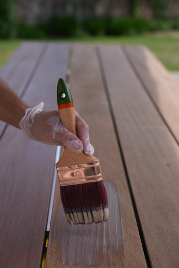Remove old coatings if needed, sand or clean the wood, and rinse thoroughly. Make sure the surface is fully clean and dry before applying any finish.